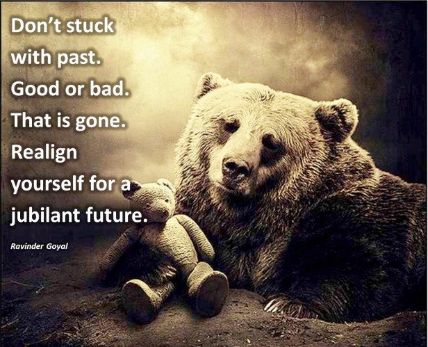 My Quotes Quote of the day… Date: December 29, 2016Author: Ravinder Goyal 0 Comments Don’t stuck with past. Good or bad. That is gone. Realign yourself for a jubilant future. Share this:TweetShare on Tumblr Click to share on WhatsApp (Opens in new window) WhatsApp Click to share on Reddit (Opens in new window) Reddit Click to email a link to a friend (Opens in new window) Email Like Loading...
