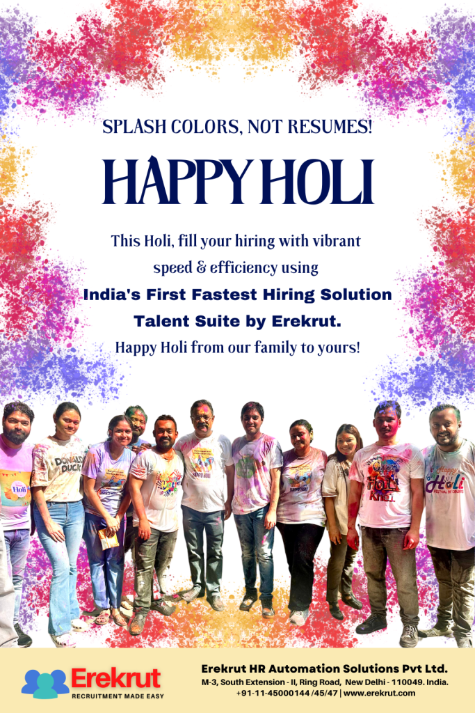 This Holi, fill your hiring with vibrant speed & efficiency using India’s First Fastest Hiring Solution—Talent Suite by Erekrut.